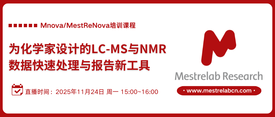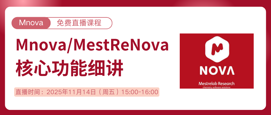Mnova用户,您好! Mestrelab Research中国团队将联合林崇熙教授推出系列分析化学和Mnova软件的课程内容,该系列课程将采取线上直播(腾讯会议)的形式,围绕分析化学、核磁共振、核磁共振分析仪器、以及Mnov...